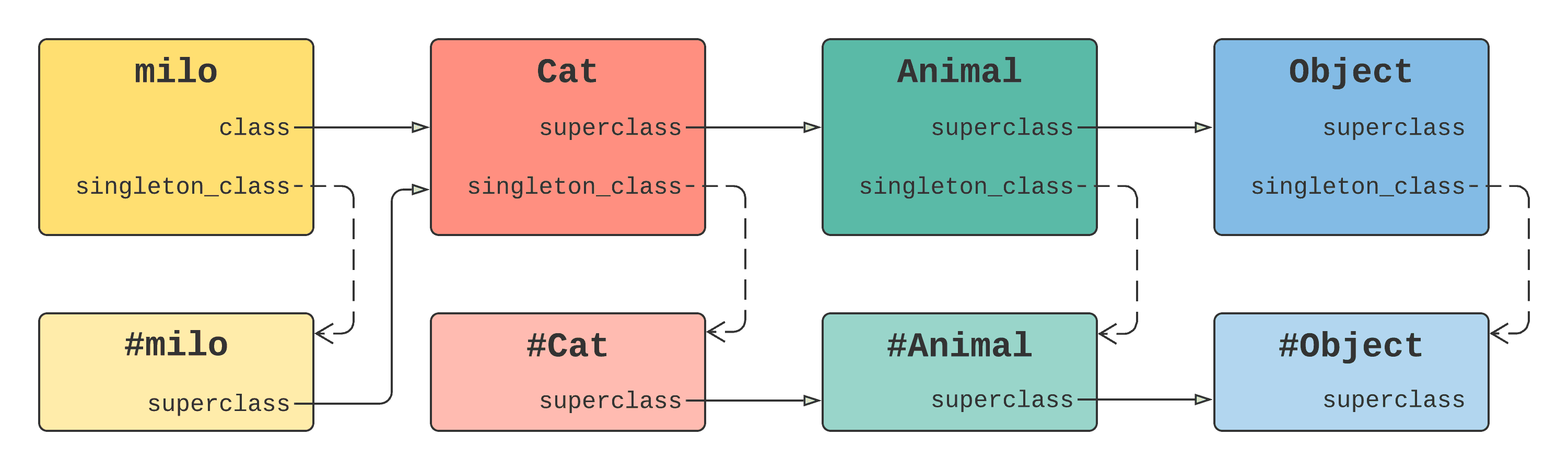 When calling a method on an object, Ruby will perform the method lookup by first checking on the object’s singleton class, before traversing the rest of the method chain.
